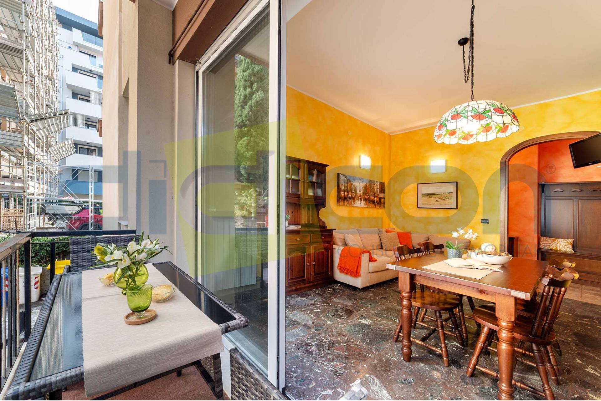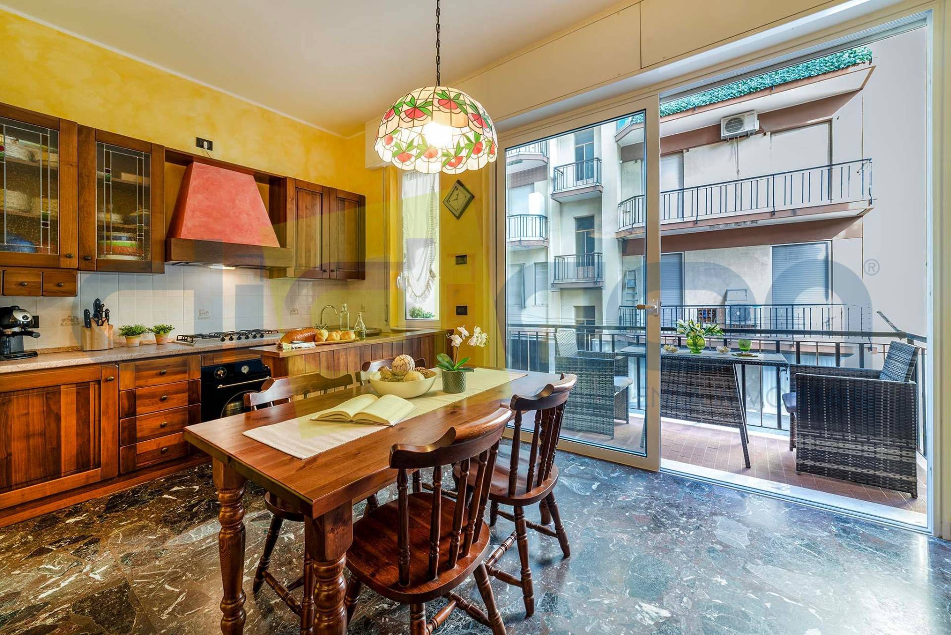 - soggiorno con angolo cottura con uscita sul balcone